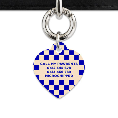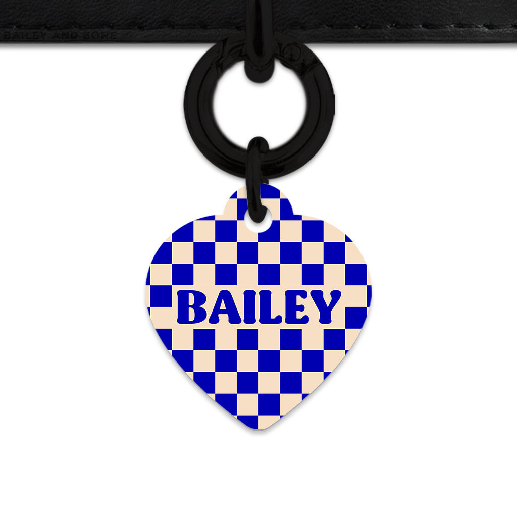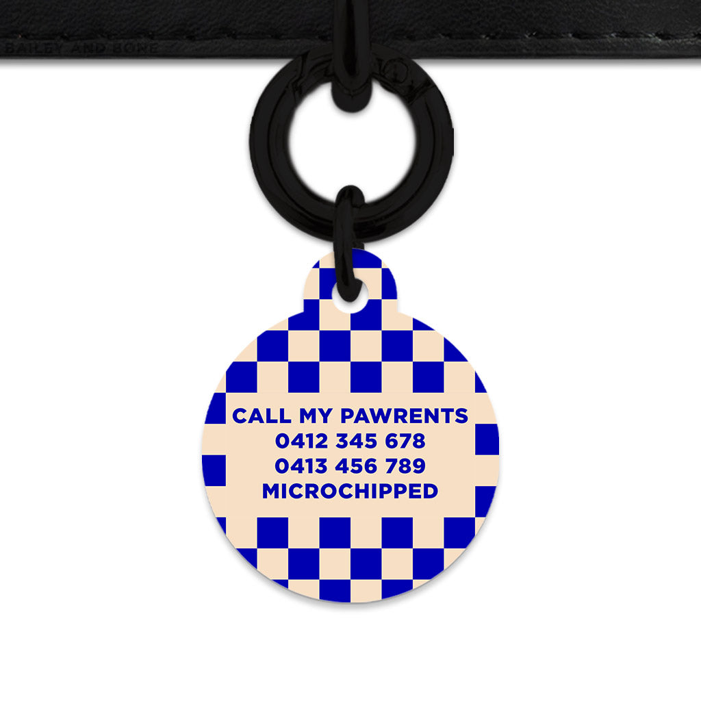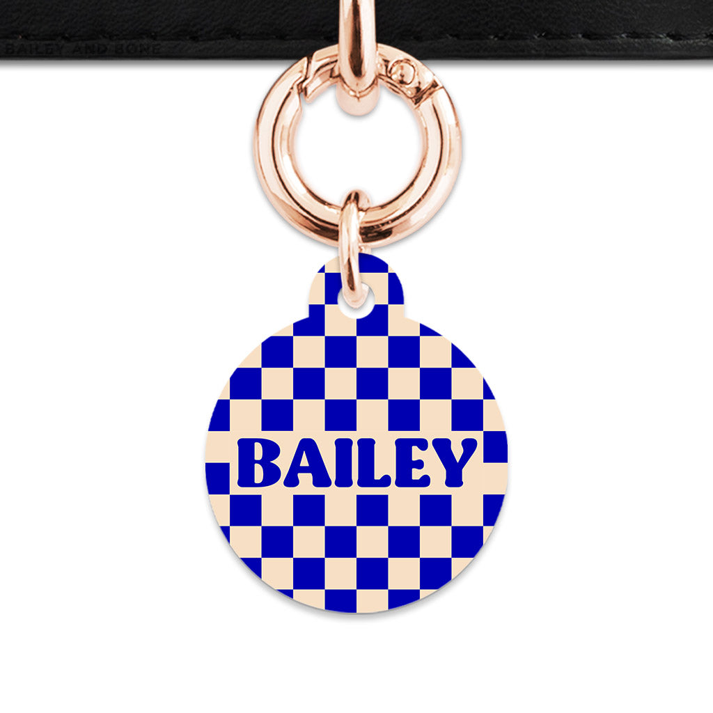 Bailey And Bone Pet ID Tag Blue And Beige Checkers Pet Tag