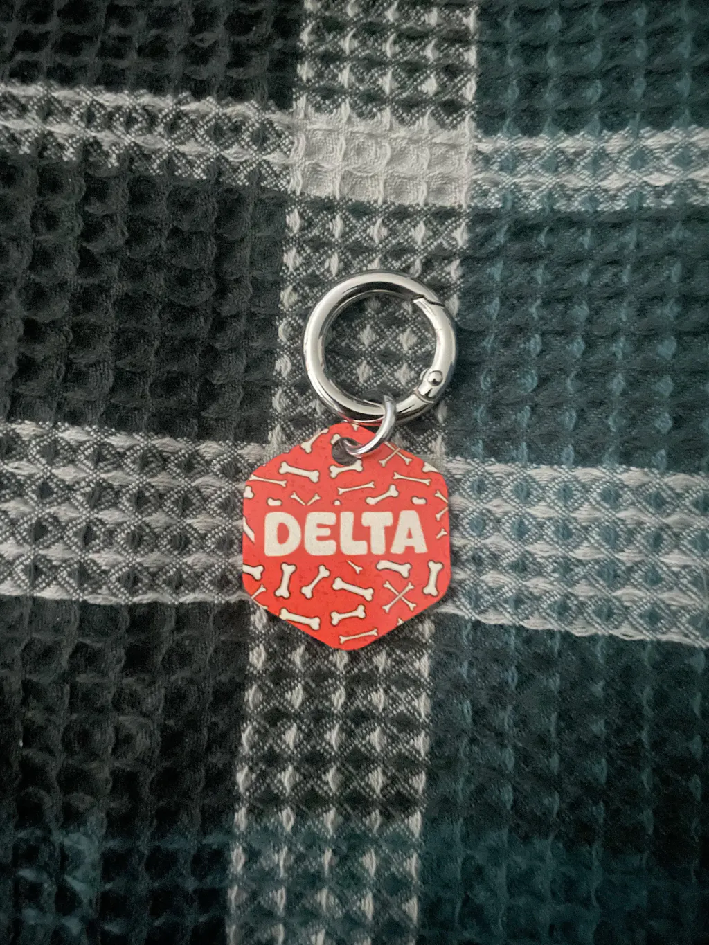 Saffron loves his new tag. It’s very stylist and great quality. We also love that it is light weight.